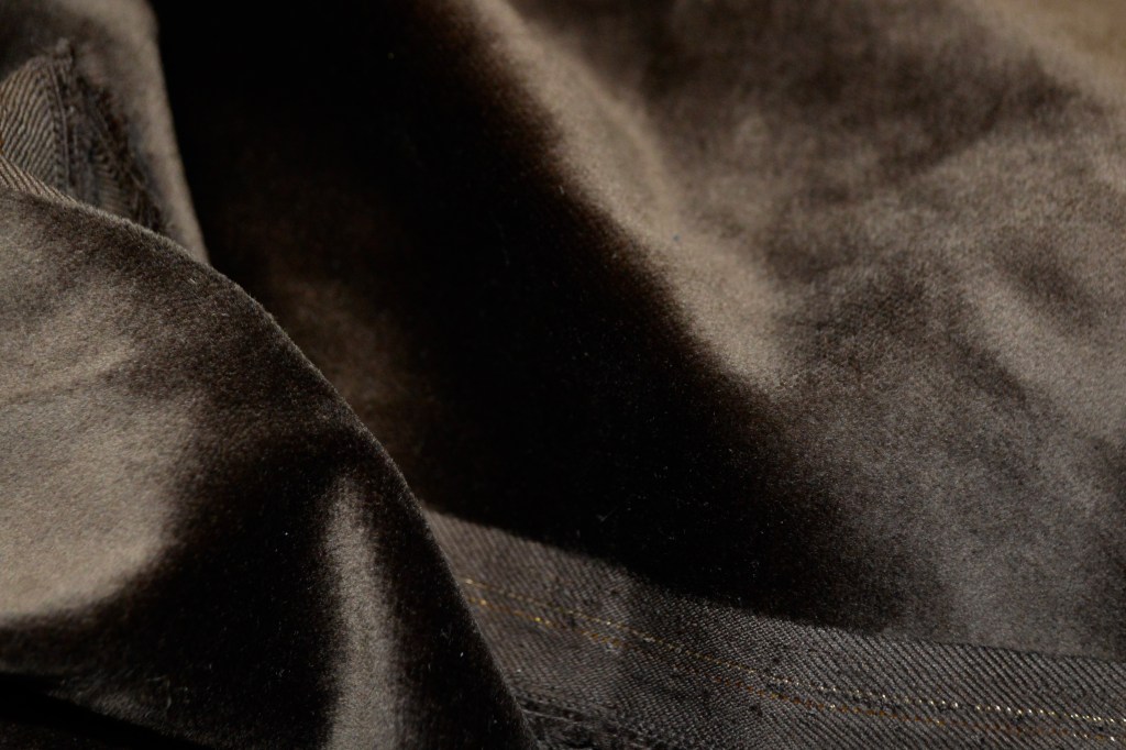 Sélection Prestige. Très beau velours lisse 100% coton à la tenue parfaite. Collection Haute Couture italienne. Idéal veste, robe, pantalon, jupe. Largeur: 150 cm.
