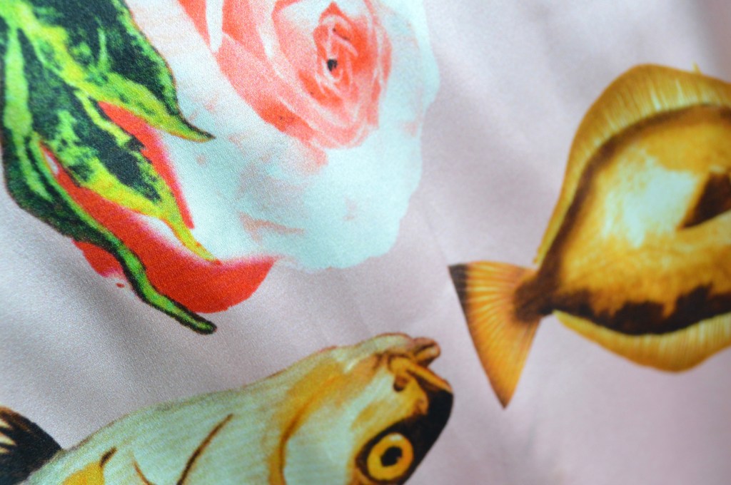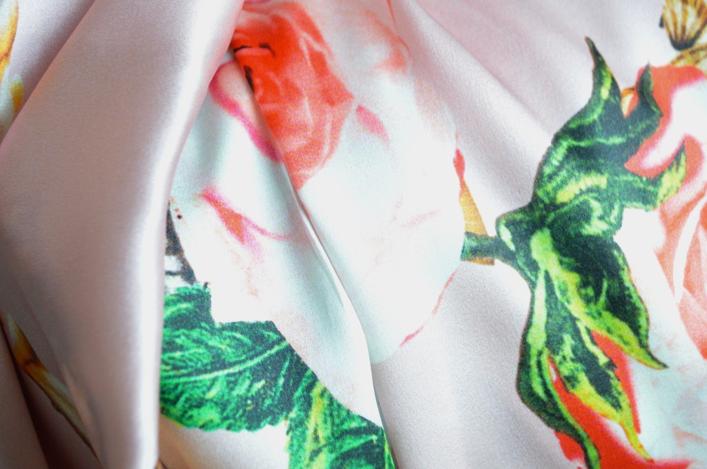 Sélection Prestige. Pièce rare d’exception à l’imprimé au style reconnaissable de cette Maison de Haute Couture italienne. 98% soie, 2% élasthane. Fond bouton de rose et fluidité parfaite. Idéal robe, blouse. Largeur: 113 cm.