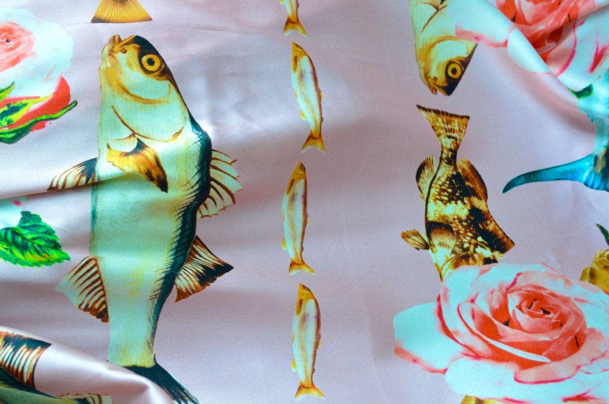 Sélection Prestige. Pièce rare d’exception à l’imprimé au style reconnaissable de cette Maison de Haute Couture italienne. 98% soie, 2% élasthane. Fond bouton de rose et fluidité parfaite. Idéal robe, blouse. Largeur: 113 cm.