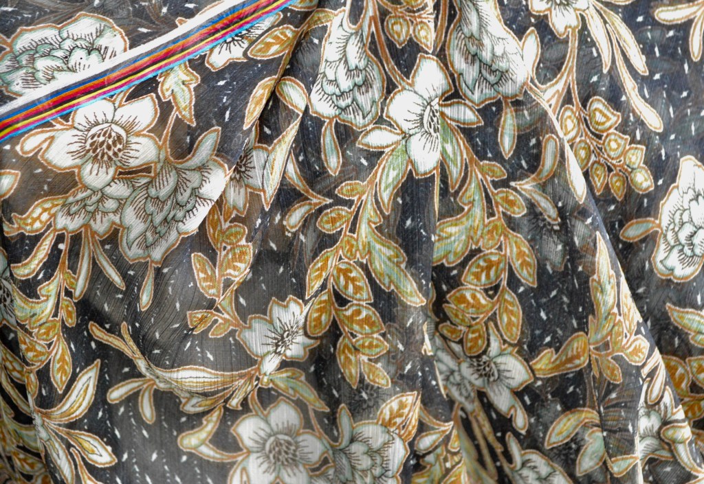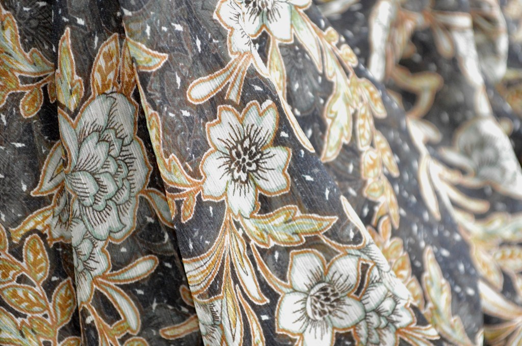 • Voile floral élégant. Collection Haute Couture italienne. 20% soie, 80% polyamide. Idéal blouse. Largeur: 150 cm. Coupe de 1,9 m.